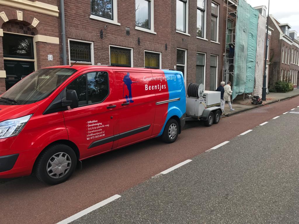 Na het zandstralen en het aanbrengen van het nieuwe voegwerk is de gevel weer gigantisch schoon en fraai.